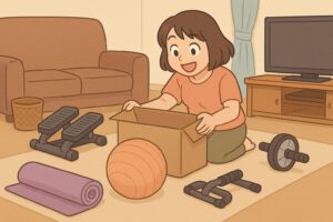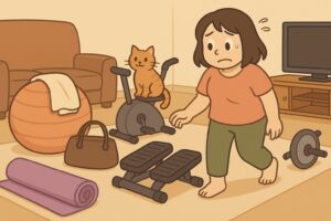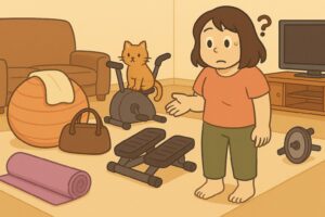 気づけば部屋の片隅や床の上に…なんてこと、ありませんか?エアロバイク、バランスボール、ヨガマットなどなど。最初はやる気満々で始めても、だんだんと「物置き化」してしまう人は多いもの。