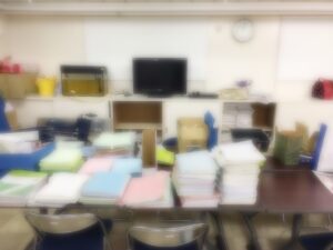 ・机に積み上がる書類
