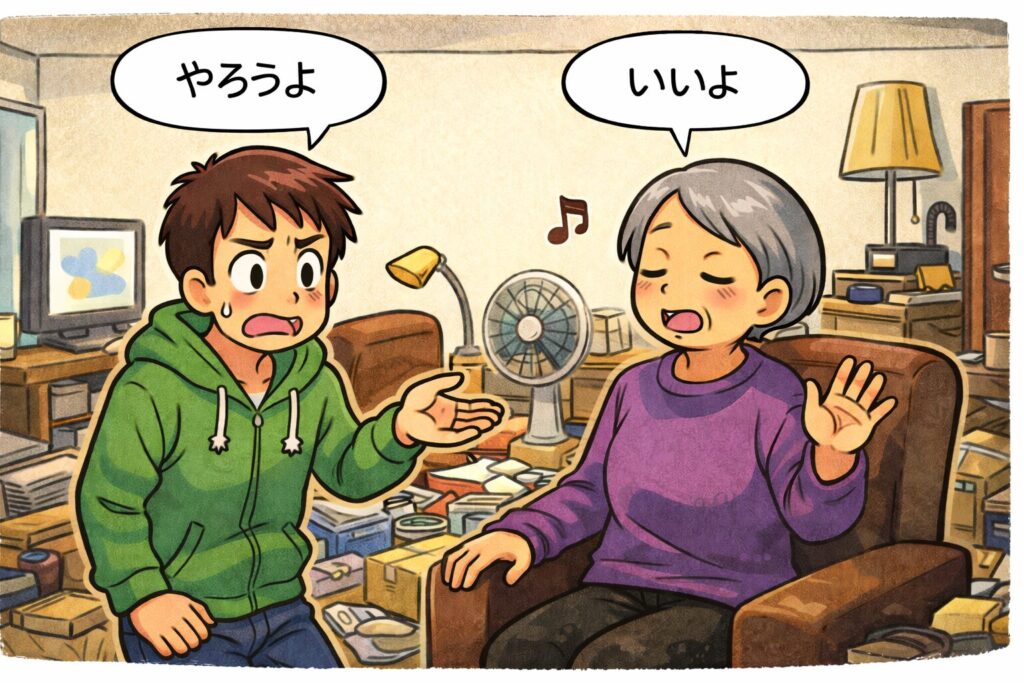 「そろそろ家の片付けをしたほうがいいんじゃない?」 そう声をかけた瞬間、 親の表情が曇ったり、機嫌が悪くなったり。 そんな経験はありませんか? • 「縁起でもない」 • 「まだ元気だから大丈夫」 • 「勝手に捨てないで」